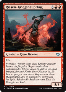 | Rules | Haste Myriad (Whenever this creature attacks, for each opponent other than defending player, you may create a token that's a copy of this creature that's tapped and attacking that player or a planeswalker they control. Exile the tokens at end of combat.) |