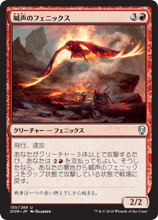 | Rules | Flying, haste Whenever you attack with three or more creatures, you may pay . If you do, return Warcry Phoenix from your graveyard to the battlefield tapped and attacking. |