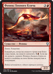 | Rules | Flying, haste Whenever you attack with three or more creatures, you may pay . If you do, return Warcry Phoenix from your graveyard to the battlefield tapped and attacking. |