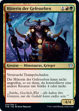 | Rules | Trample Warden of the Chained can't attack unless you control another creature with power 4 or greater. |