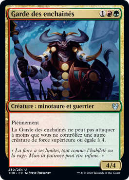 | Rules | Trample Warden of the Chained can't attack unless you control another creature with power 4 or greater. |