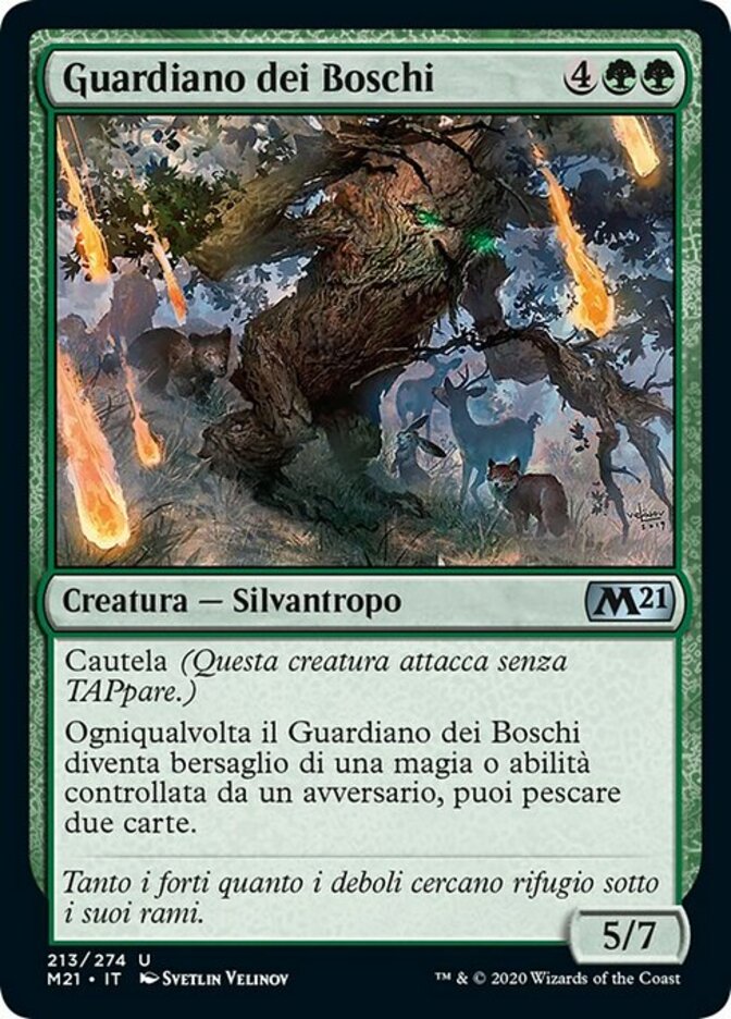 | Rules | Vigilance (Attacking doesn't cause this creature to tap.) Whenever Warden of the Woods becomes the target of a spell or ability an opponent controls, you may draw two cards. |