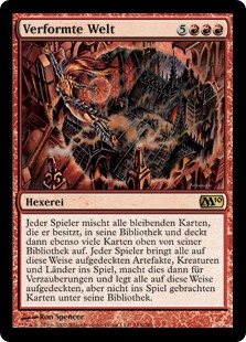 | Rules | Each player shuffles all permanents they own into their library, then reveals that many cards from the top of their library. Each player puts all artifact, creature, and land cards revealed this way onto the battlefield, then does the same for enchantment cards, then puts all cards revealed this way that weren't put onto the battlefield on the bottom of their library. |