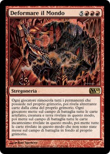 | Rules | Each player shuffles all permanents they own into their library, then reveals that many cards from the top of their library. Each player puts all artifact, creature, and land cards revealed this way onto the battlefield, then does the same for enchantment cards, then puts all cards revealed this way that weren't put onto the battlefield on the bottom of their library. |