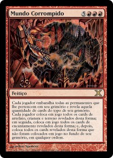 | Rules | Each player shuffles all permanents they own into their library, then reveals that many cards from the top of their library. Each player puts all artifact, creature, and land cards revealed this way onto the battlefield, then does the same for enchantment cards, then puts all cards revealed this way that weren't put onto the battlefield on the bottom of their library. |