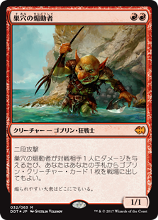 | Rules | Double strike Whenever Warren Instigator deals damage to an opponent, you may put a Goblin creature card from your hand onto the battlefield. |