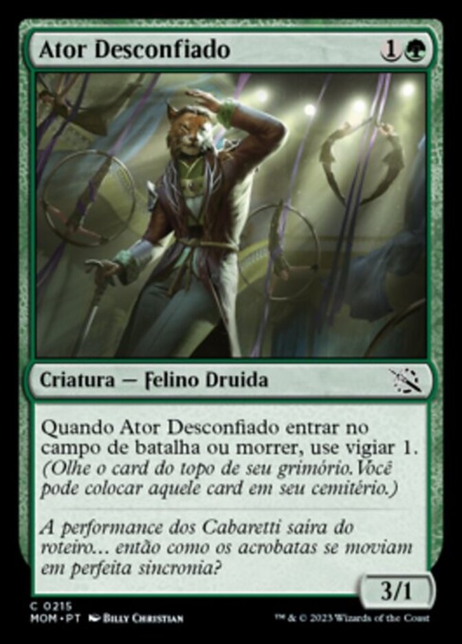 | Rules | When Wary Thespian enters the battlefield or dies, surveil 1. (Look at the top card of your library. You may put that card into your graveyard.) |