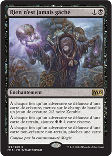 | Rules | Whenever an opponent discards a creature card, create a 2/2 black Zombie creature token. Whenever an opponent discards a land card, add . Whenever an opponent discards a noncreature, nonland card, draw a card. |