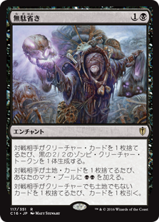 | Rules | Whenever an opponent discards a creature card, create a 2/2 black Zombie creature token. Whenever an opponent discards a land card, add . Whenever an opponent discards a noncreature, nonland card, draw a card. |