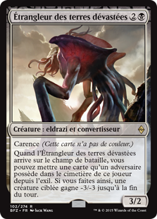 | Rules | Devoid (This card has no color.) When Wasteland Strangler enters the battlefield, you may put a card an opponent owns from exile into that player's graveyard. If you do, target creature gets -3/-3 until end of turn. |