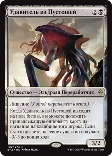 | Rules | Devoid (This card has no color.) When Wasteland Strangler enters the battlefield, you may put a card an opponent owns from exile into that player's graveyard. If you do, target creature gets -3/-3 until end of turn. |