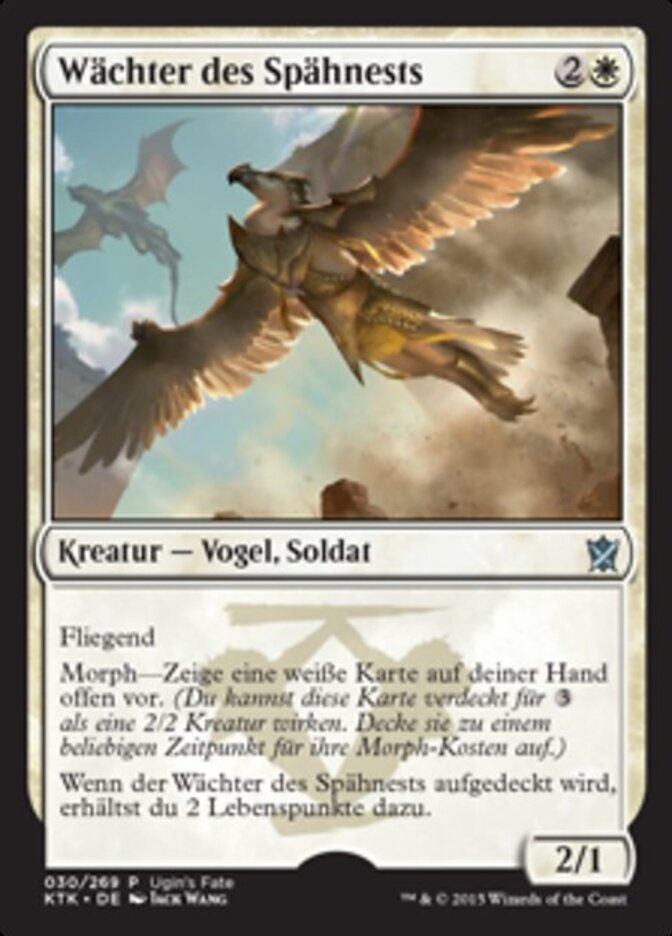 | Rules | Flying Morph—Reveal a white card in your hand. (You may cast this card face down as a 2/2 creature for . Turn it face up any time for its morph cost.) When Watcher of the Roost is turned face up, you gain 2 life. |