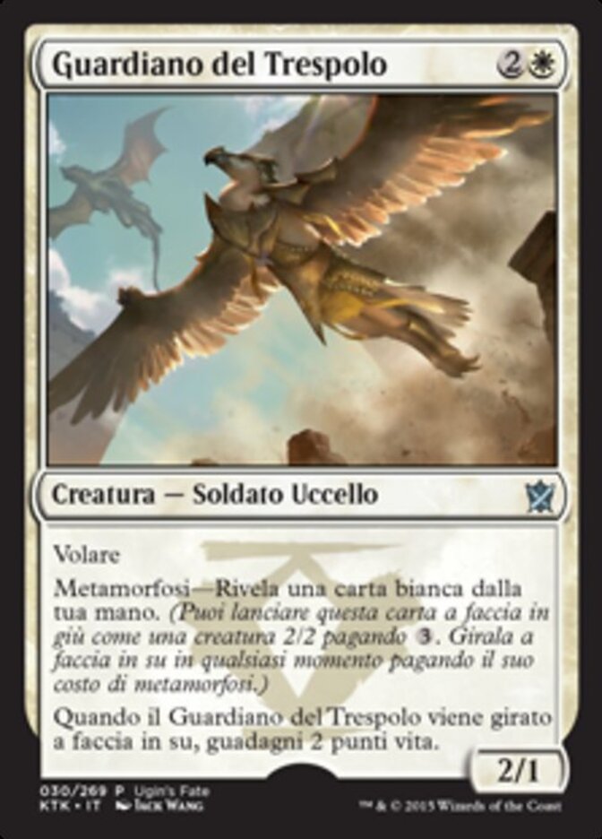 | Rules | Flying Morph—Reveal a white card in your hand. (You may cast this card face down as a 2/2 creature for . Turn it face up any time for its morph cost.) When Watcher of the Roost is turned face up, you gain 2 life. |