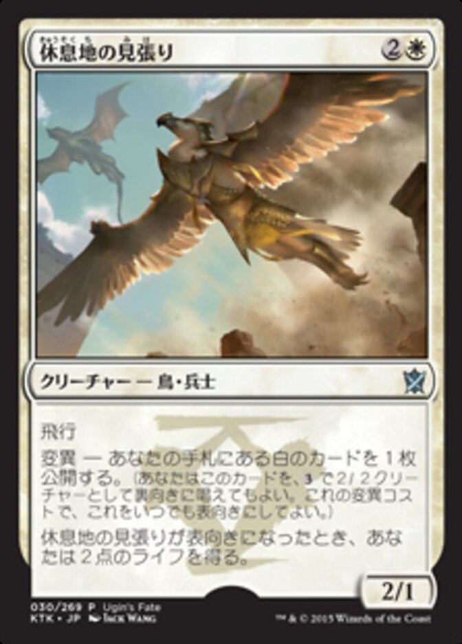 | Rules | Flying Morph—Reveal a white card in your hand. (You may cast this card face down as a 2/2 creature for . Turn it face up any time for its morph cost.) When Watcher of the Roost is turned face up, you gain 2 life. |