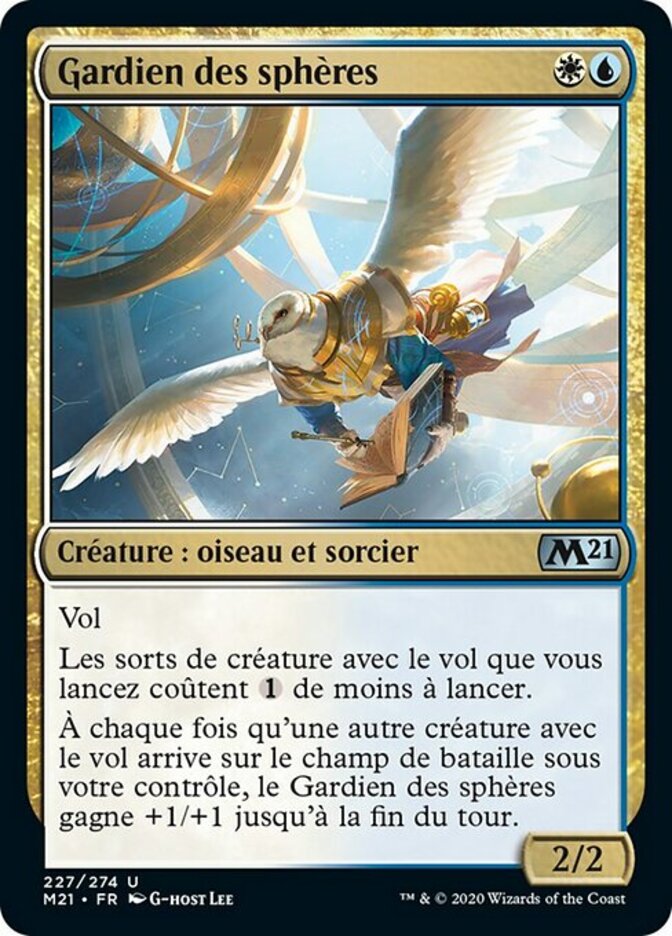 | Rules | Flying Creature spells with flying you cast cost less to cast. Whenever another creature with flying enters the battlefield under your control, Watcher of the Spheres gets +1/+1 until end of turn. |