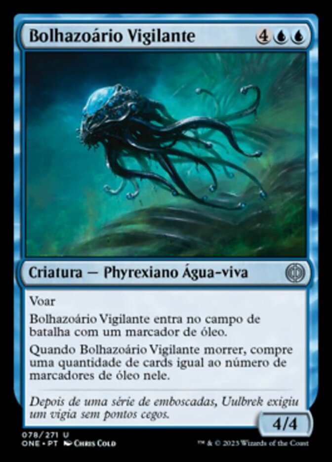 | Rules | Flying Watchful Blisterzoa enters the battlefield with an oil counter on it. When Watchful Blisterzoa dies, draw cards equal to the number of oil counters on it. |