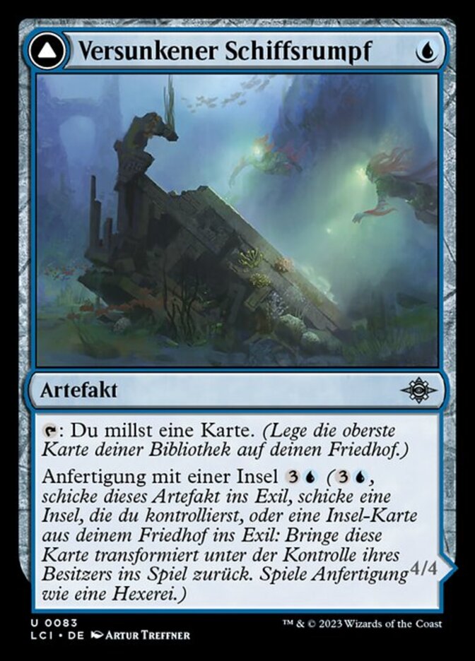 | Rules | : Mill a card. (Put the top card of your library into your graveyard.) Craft with Island (, Exile this artifact, Exile an Island you control or an Island card from your graveyard: Return this card transformed under its owner's control. Craft only as a sorcery.) // Vigilance Descend 8 — Watertight Gondola can't be blocked as long as there are eight or more permanent cards in your graveyard. Crew 1 (Tap any number of creatures you control with total power 1 or more: This Vehicle becomes an artifact creature until end of turn.) |
