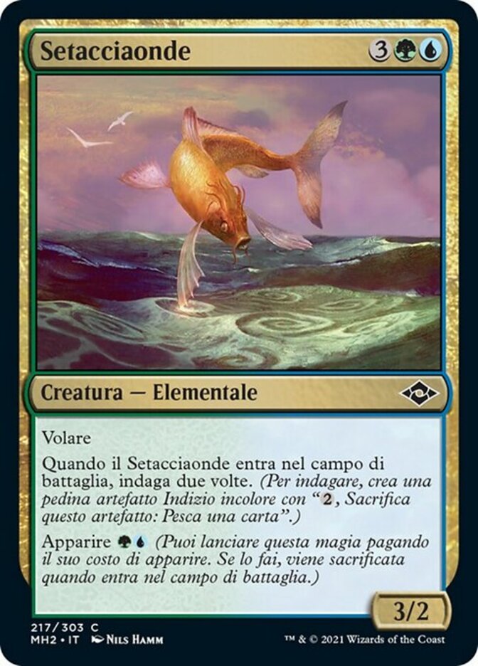 | Rules | Flying When Wavesifter enters the battlefield, investigate twice. (To investigate, create a colorless Clue artifact token with ", Sacrifice this artifact: Draw a card.") Evoke (You may cast this spell for its evoke cost. If you do, it's sacrificed when it enters the battlefield.) |