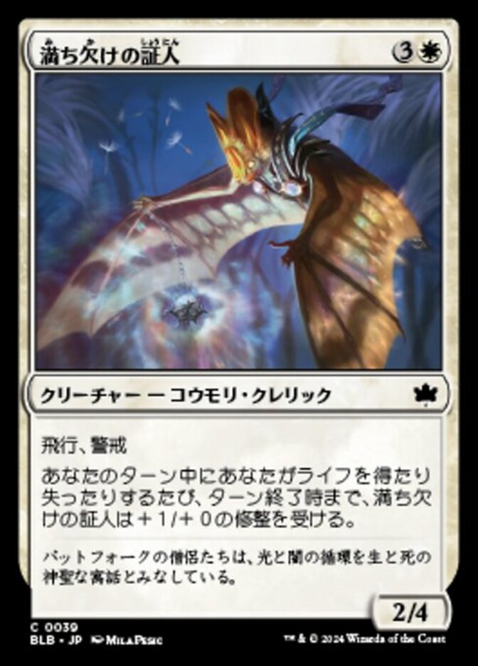 | Rules | Flying, vigilance Whenever you gain or lose life during your turn, Wax-Wane Witness gets +1/+0 until end of turn. |