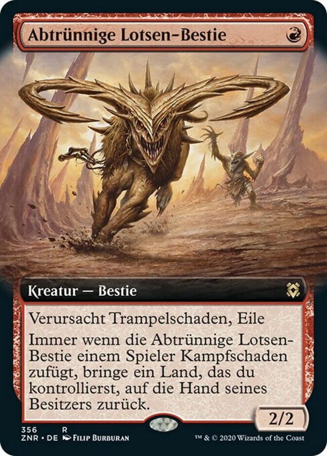 | Rules | Trample, haste Whenever Wayward Guide-Beast deals combat damage to a player, return a land you control to its owner's hand. |