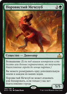 | Rules | Ascend (If you control ten or more permanents, you get the city's blessing for the rest of the game.) You may play an additional land on each of your turns. Wayward Swordtooth can't attack or block unless you have the city's blessing. |