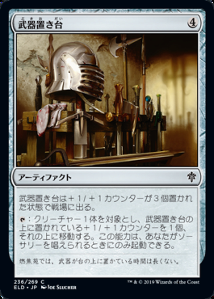 | Rules | Weapon Rack enters the battlefield with three +1/+1 counters on it. : Move a +1/+1 counter from Weapon Rack onto target creature. Activate only as a sorcery. |