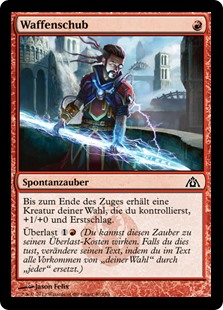 | Rules | Target creature you control gets +1/+0 and gains first strike until end of turn. Overload (You may cast this spell for its overload cost. If you do, change its text by replacing all instances of "target" with "each.") |