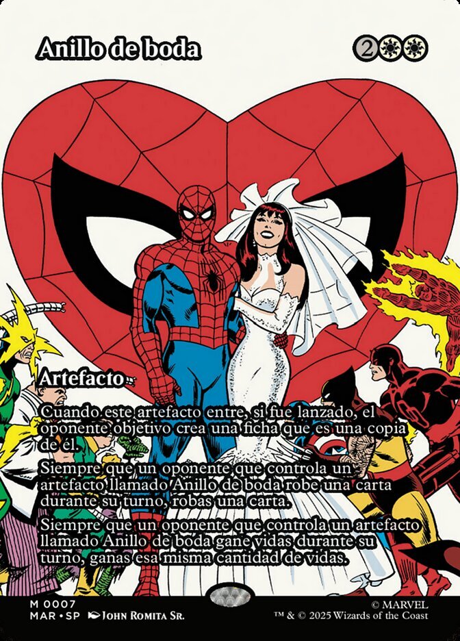 | Rules | When Wedding Ring enters the battlefield, if it was cast, target opponent creates a token that's a copy of it. Whenever an opponent who controls an artifact named Wedding Ring draws a card during their turn, you draw a card. Whenever an opponent who controls an artifact named Wedding Ring gains life during their turn, you gain that much life. |