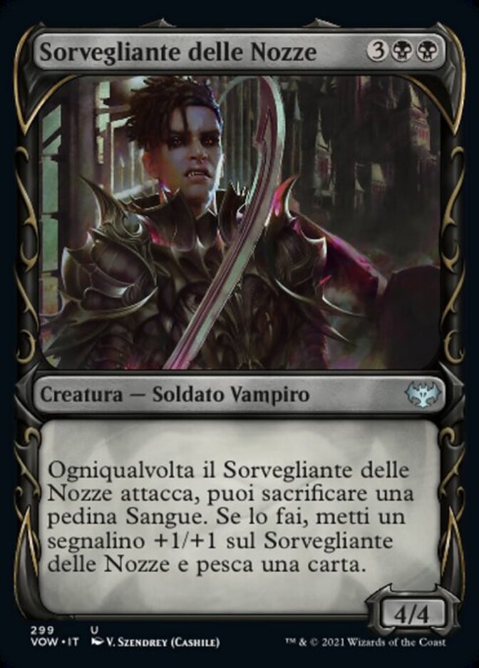| Rules | Whenever Wedding Security attacks, you may sacrifice a Blood token. If you do, put a +1/+1 counter on Wedding Security and draw a card. |