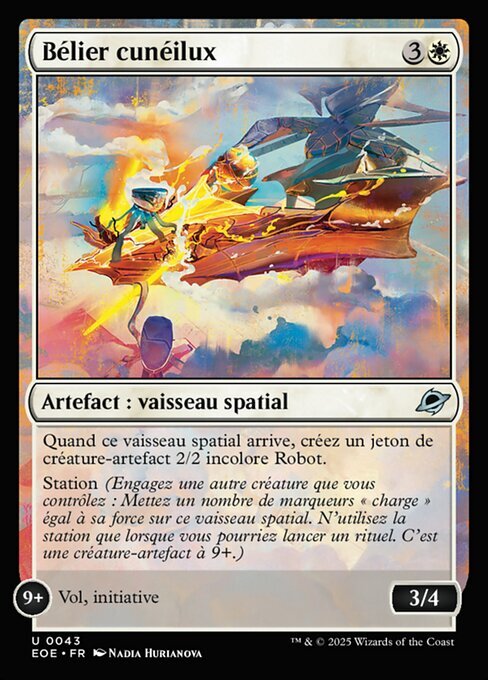 | Rules | When this Spacecraft enters, create a 2/2 colorless Robot artifact creature token. Station (Tap another creature you control: Put charge counters equal to its power on this Spacecraft. Station only as a sorcery. It's an artifact creature at 9+.) STATION 9+ Flying, first strike |