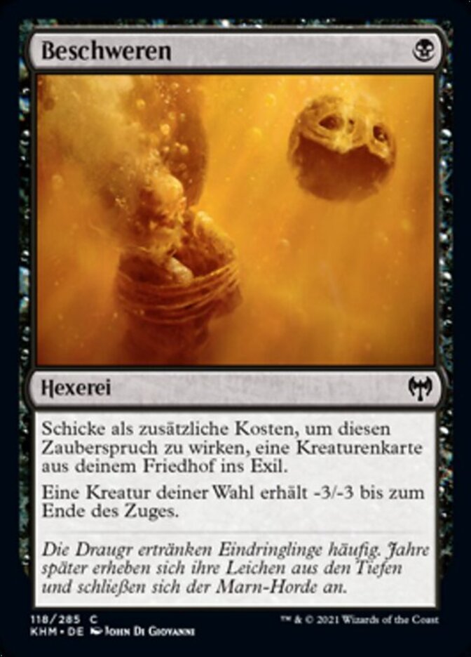 | Rules | As an additional cost to cast this spell, exile a creature card from your graveyard. Target creature gets -3/-3 until end of turn. |