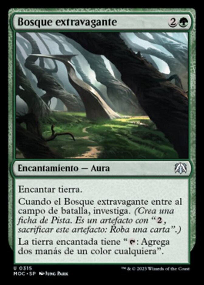 | Rules | Enchant land When Weirding Wood enters the battlefield, investigate. (Create a colorless Clue artifact token with ", Sacrifice this artifact: Draw a card.") Enchanted land has ": Add two mana of any one color." |