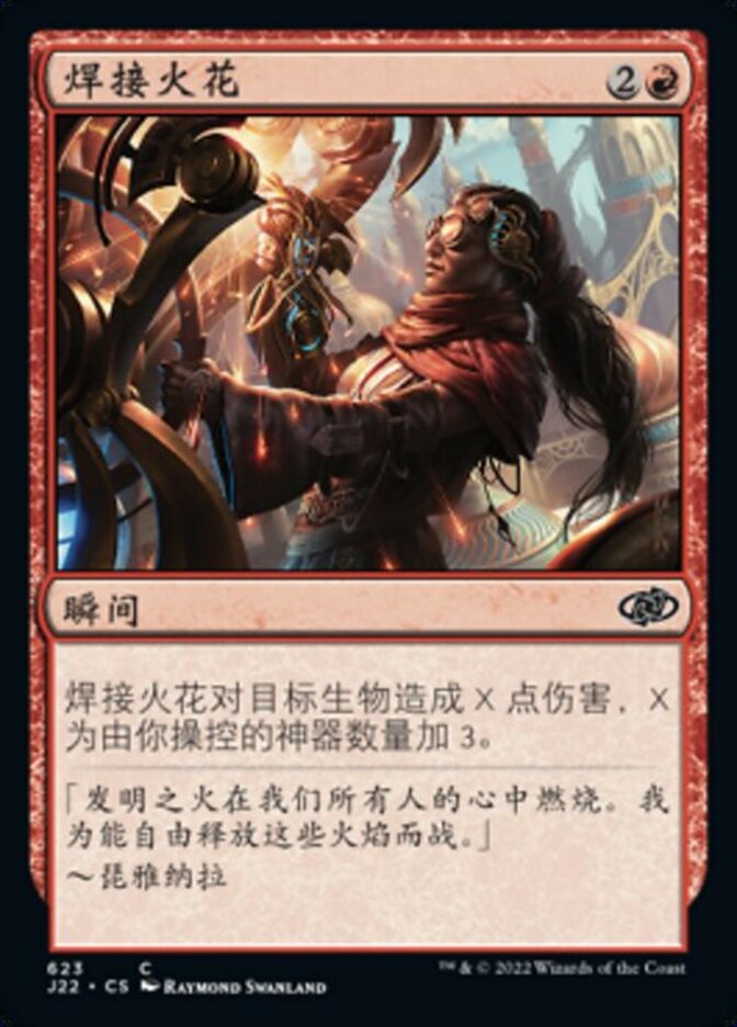 | Rules | Welding Sparks deals X damage to target creature, where X is 3 plus the number of artifacts you control. |
