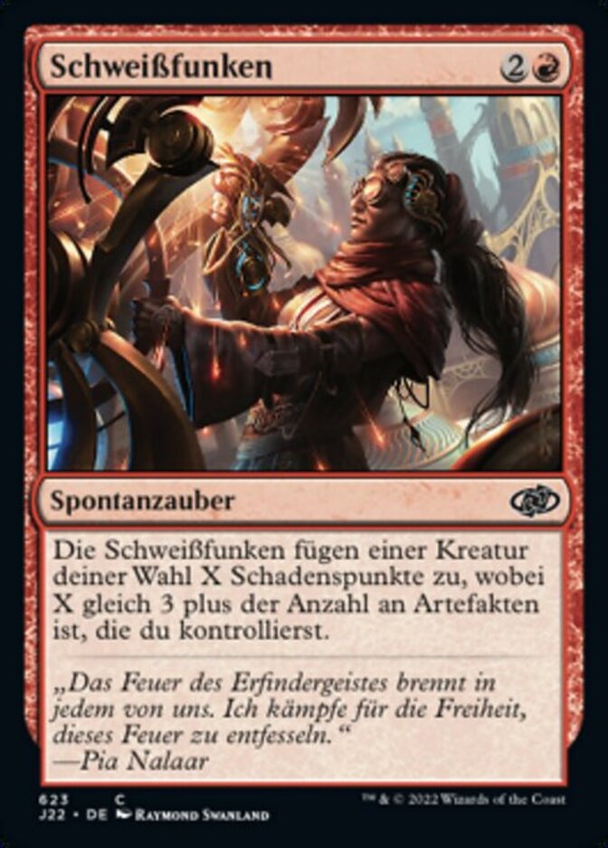 | Rules | Welding Sparks deals X damage to target creature, where X is 3 plus the number of artifacts you control. |