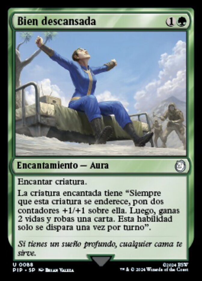 | Rules | Enchant creature Enchanted creature has "Whenever this creature becomes untapped, put two +1/+1 counters on it, then you gain 2 life and draw a card. This ability triggers only once each turn." |