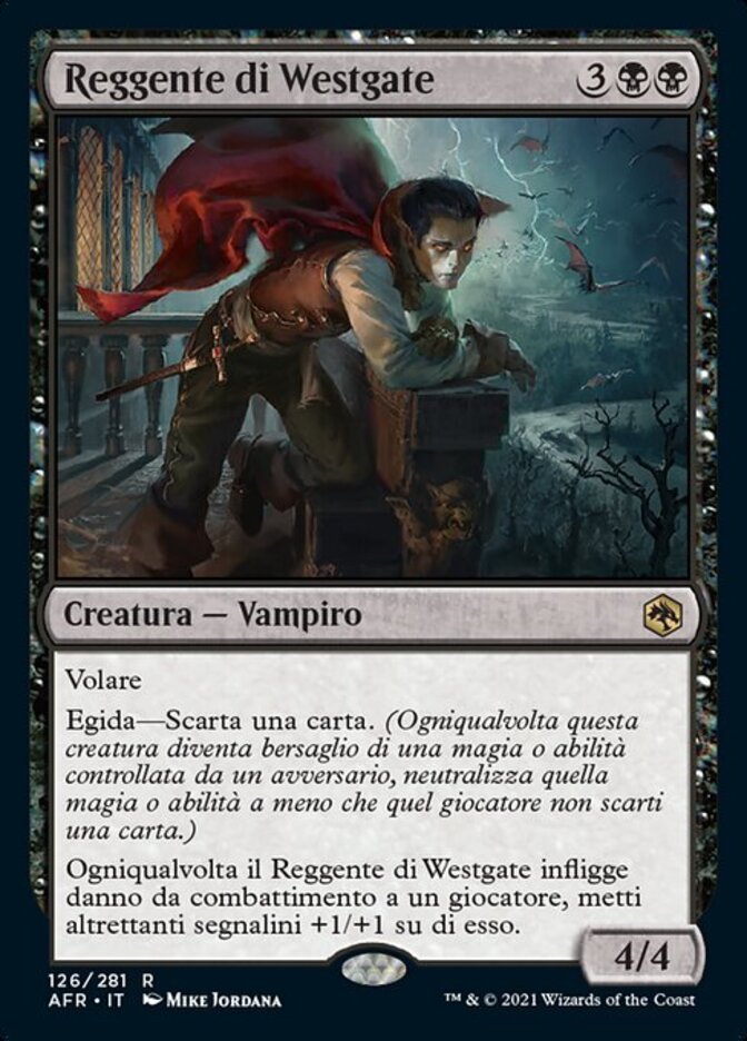 | Rules | Flying Ward—Discard a card. (Whenever this creature becomes the target of a spell or ability an opponent controls, counter it unless that player discards a card.) Whenever Westgate Regent deals combat damage to a player, put that many +1/+1 counters on it. |