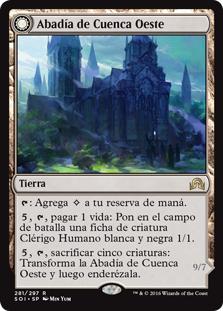 | Rules | : Add . , , Pay 1 life: Create a 1/1 white and black Human Cleric creature token. , , Sacrifice five creatures: Transform Westvale Abbey, then untap it. // Flying, lifelink, indestructible, haste |