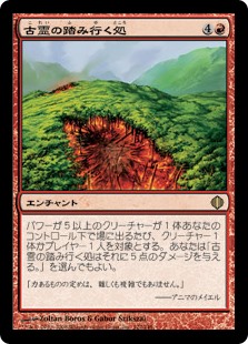 | Rules | Whenever a creature with power 5 or greater enters the battlefield under your control, you may have Where Ancients Tread deal 5 damage to any target. |