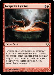 | Rules | Starting with you, each player separates all permanents they control into three piles. Then each player chooses one of their piles at random and sacrifices those permanents. (Piles can be empty.) |
