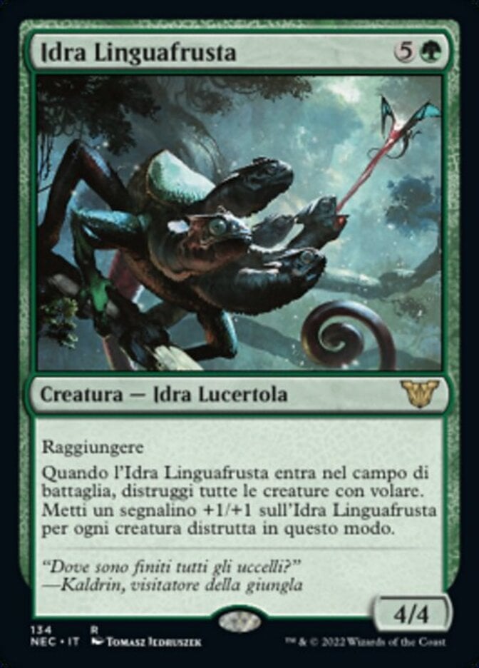 | Rules | Reach When Whiptongue Hydra enters the battlefield, destroy all creatures with flying. Put a +1/+1 counter on Whiptongue Hydra for each creature destroyed this way. |