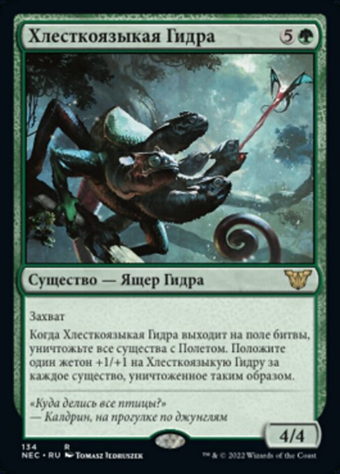 | Rules | Reach When Whiptongue Hydra enters the battlefield, destroy all creatures with flying. Put a +1/+1 counter on Whiptongue Hydra for each creature destroyed this way. |
