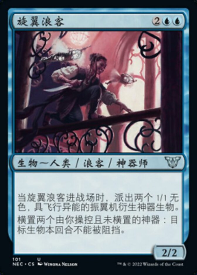 | Rules | When Whirler Rogue enters the battlefield, create two 1/1 colorless Thopter artifact creature tokens with flying. Tap two untapped artifacts you control: Target creature can't be blocked this turn. |