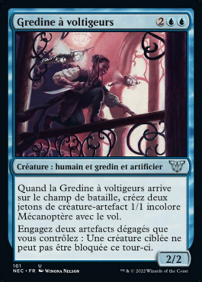 | Rules | When Whirler Rogue enters the battlefield, create two 1/1 colorless Thopter artifact creature tokens with flying. Tap two untapped artifacts you control: Target creature can't be blocked this turn. |