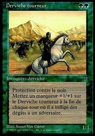 | Rules | Protection from black At the beginning of each end step, if Whirling Dervish dealt damage to an opponent this turn, put a +1/+1 counter on it. |