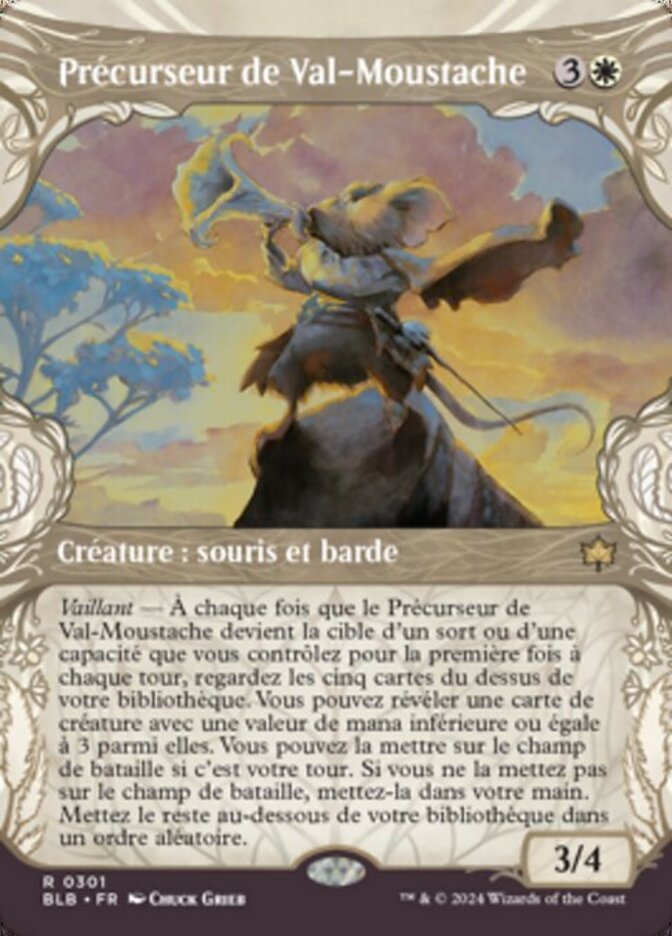 | Rules | Valiant — Whenever Whiskervale Forerunner becomes the target of a spell or ability you control for the first time each turn, look at the top five cards of your library. You may reveal a creature card with mana value 3 or less from among them. You may put it onto the battlefield if it's your turn. If you don't put it onto the battlefield, put it into your hand. Put the rest on the bottom of your library in a random order. |
