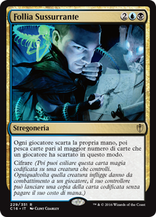 | Rules | Each player discards their hand, then draws cards equal to the greatest number of cards a player discarded this way. Cipher (Then you may exile this spell card encoded on a creature you control. Whenever that creature deals combat damage to a player, its controller may cast a copy of the encoded card without paying its mana cost.) |
