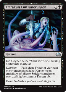 | Rules | Target opponent discards a card at random. Delirium — If there are four or more card types among cards in your graveyard, that player discards two cards at random instead. |