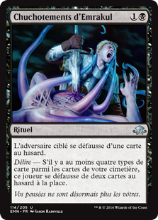 | Rules | Target opponent discards a card at random. Delirium — If there are four or more card types among cards in your graveyard, that player discards two cards at random instead. |