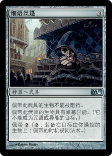 | Rules | Equipped creature can't be blocked and has shroud. (It can't be the target of spells or abilities.) Equip |