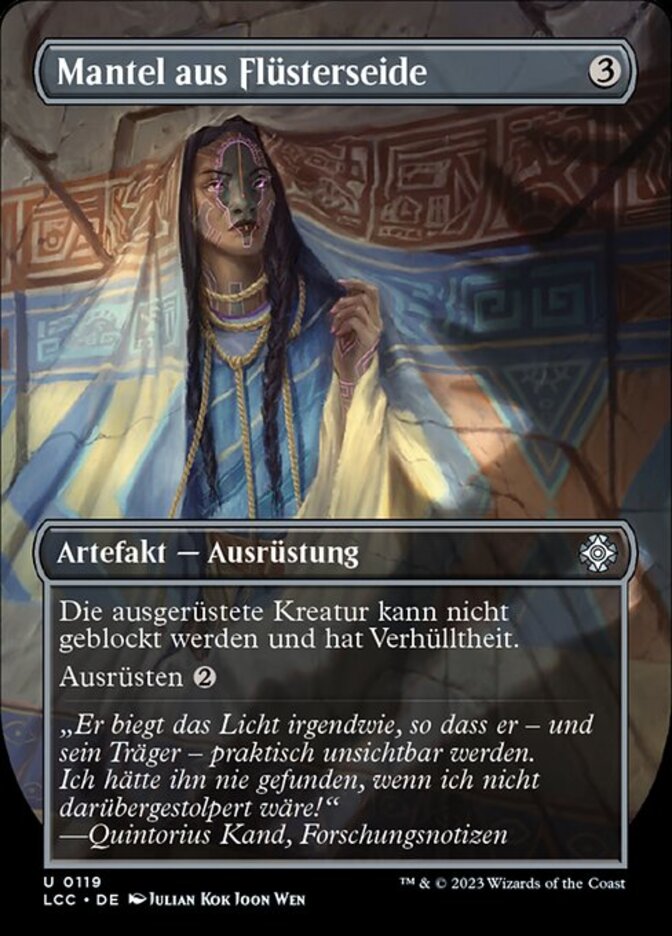 | Rules | Equipped creature can't be blocked and has shroud. (It can't be the target of spells or abilities.) Equip |